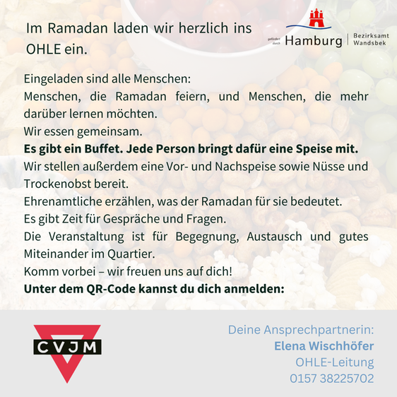 Wenn Du mit mehr als 5 Personen zum Fastenbrechen kommen möchtest, fülle bitte eine zweite Anmeldung für die weiteren Personen aus.